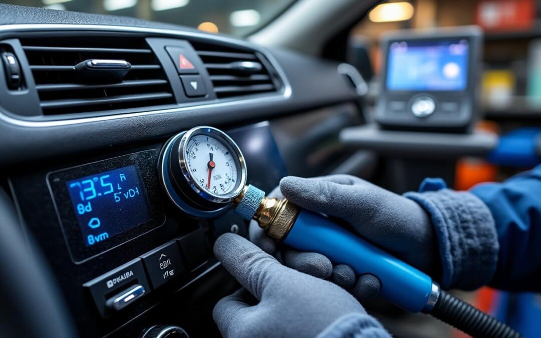 Après recharge, le véhicule est démarré et la clim mise en route. Le technicien contrôle alors la température de l’air à la bouche d’aération, la pression du circuit, ainsi que l’absence de bruits anormaux. Certains garages complètent ce contrôle par un test de fuite supplémentaire, notamment si le niveau récupéré au départ semblait anormalement bas.